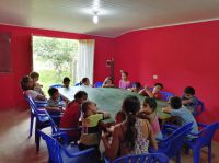 Trabalhos de Evangelismo: Estamos trabalhando com crianças nos dias de sábado contando histórias bíblicas e evangelizando, Deus tem nos abençoado com este trabalho porque alguns pais estão se aproximando das nossas reuniões e temos a oportunidade de evangelizá-los também. Temos ainda as reuniões de discipulado onde as famílias dos irmãos estão participando e ouvindo os ensinos da Palavra de Deus.